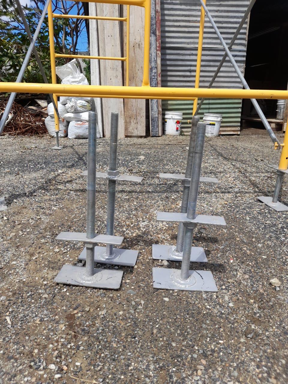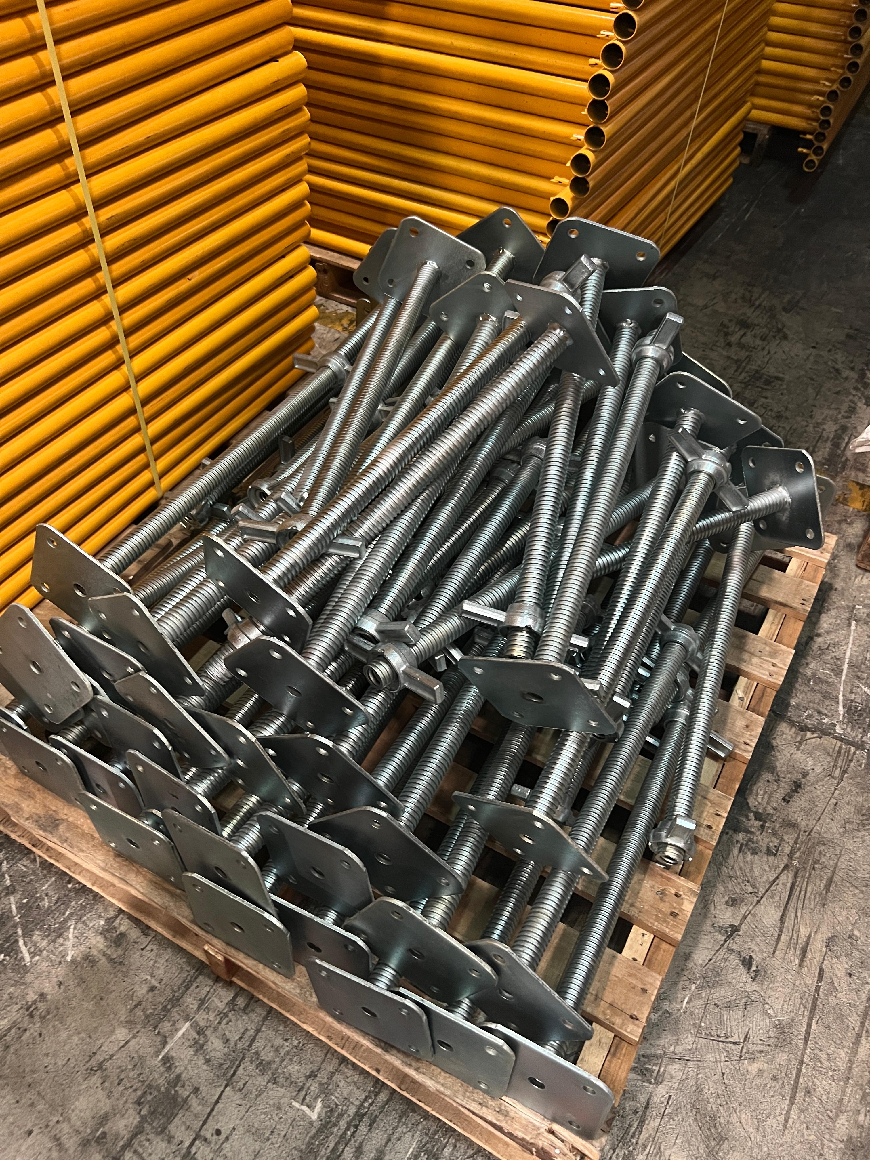 Kit de 4 tornillos niveladores, brinda estabilidad y soporte a las secciones de andamios con hasta 50cm de altura.